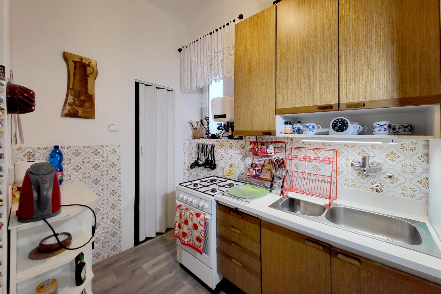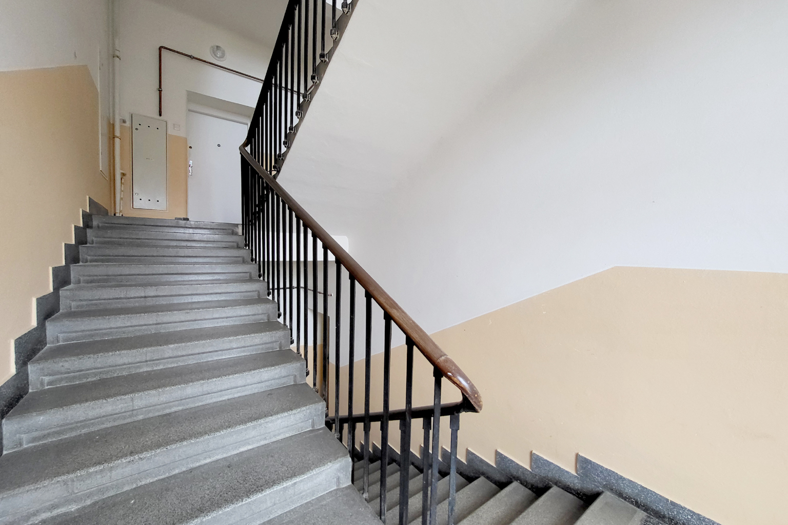Byt najdete ve 4. patře udržovaného cihlového domu a součástí je i velkorysý sklep, který bez problémů pojme kola, lyže, sezónní výbavu i pár věcí, ke kterým se nikdy nepřiznáte.