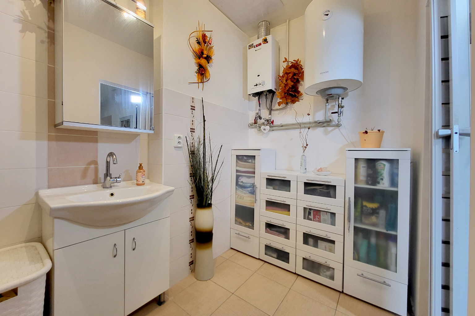 Po vstupu do bytu se otevře prostorná chodba, z níž se dostanete do všech místností. Obývací pokoj vás přivítá světlem a příjemnou atmosférou. O tu se stará cihlový krb v rohu, který dělá z této místnosti srdce celého bytu. Ať už chcete posedět s knihou nebo si vytvořit relaxační atmosféru při práci, tady to půjde samo.